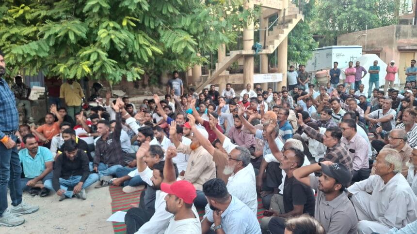 सीकर। शहर में निर्माणाधीन मकान में काम कर रहे एक मजदूर की सीढ़ी से पैर फिसलकर नीचे गिरने से मौत हो गई। मृतक के परिजनों ने मकान मालिक पर लापरवाही के आरोप लगाते हुए एसके हॉस्पिटल में मॉर्च्यूरी के बाहर विरोध-प्रदर्शन किया और धरने पर बैठ गए।