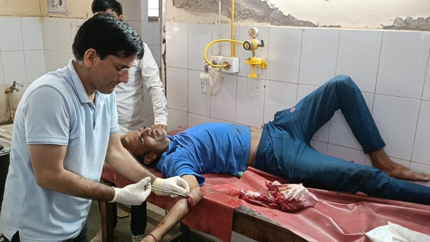 श्रीमाधोपुर। शहर में सीवरेज लाइन बिछाने के कार्य के दौरान रविवार को बड़ा हादसा हो गया। जैन मंदिर वाली गली में गलेंडर मशीन से पाइप काटते समय मजदूर हाकिम सिंह पटेल (निवासी उत्तर प्रदेश) का हाथ कट गया। गंभीर हालत में उसे चिकित्सकों ने प्राथमिक उपचार के बाद रेफर कर दिया।प्रत्यक्षदर्शियों ने बताया कि मौके पर किसी भी तरह के सुरक्षा इंतजाम नहीं थे। मजदूरों से लकड़ी काटने वाली आरी और गलेंडर से बड़े-बड़े पाइप कटवाए जा रहे थे। अचानक मशीन की चपेट में आने से हाकिम सिंह का हाथ कट गया और मजदूरों में अफरा-तफरी मच गई। स्थानीय लोगों का कहना है कि ठेकेदार की लापरवाही कोई नई बात नहीं है। इससे पहले भी कई हादसे हो चुके हैं, लेकिन न तो ठेकेदार सबक लेता है और न ही अधिकारी प्रसंज्ञान लेते हैं। मजदूर बिना हेलमेट, दस्ताने और सुरक्षा उपकरणों के काम करने को मजबूर हैं।हादसे के बाद गली में बड़ी संख्या में लोग एकत्र हो गए।
