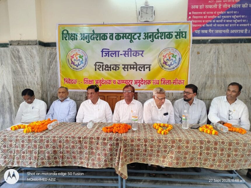 सीकर। मदरसा शिक्षक अनुदेशक व कम्प्यूटर अनुदेशक संघ की ओर से मदरसा तालीमुल कुरान, रोशनगंज सीकर में प्रथम जिला स्तरीय शिक्षक सम्मेलन का आयोजन किया गया। सम्मेलन में बड़ी संख्या में शिक्षा व कंप्यूटर अनुदेशकों ने भाग लेकर मदरसों के विकास और अपनी समस्याओं को मजबूती से रखा।